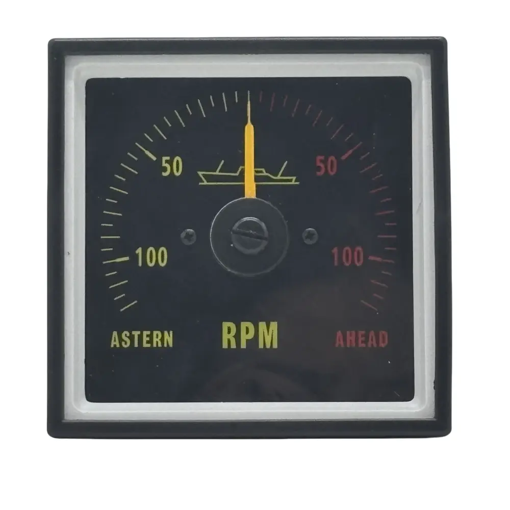 This model incorporates a 240-degree moving-coil pointer mechanism with forward and reverse RPM display. The standard signal input is ±10V DC, and other options like 4–20mA or 0–100V can be customized to suit various engine control modules. It’s equipped with LED lighting (12V/24V DC) for enhanced clarity and can be manufactured with IP-grade waterproof and corrosion-resistant materials to meet demanding marine standards.